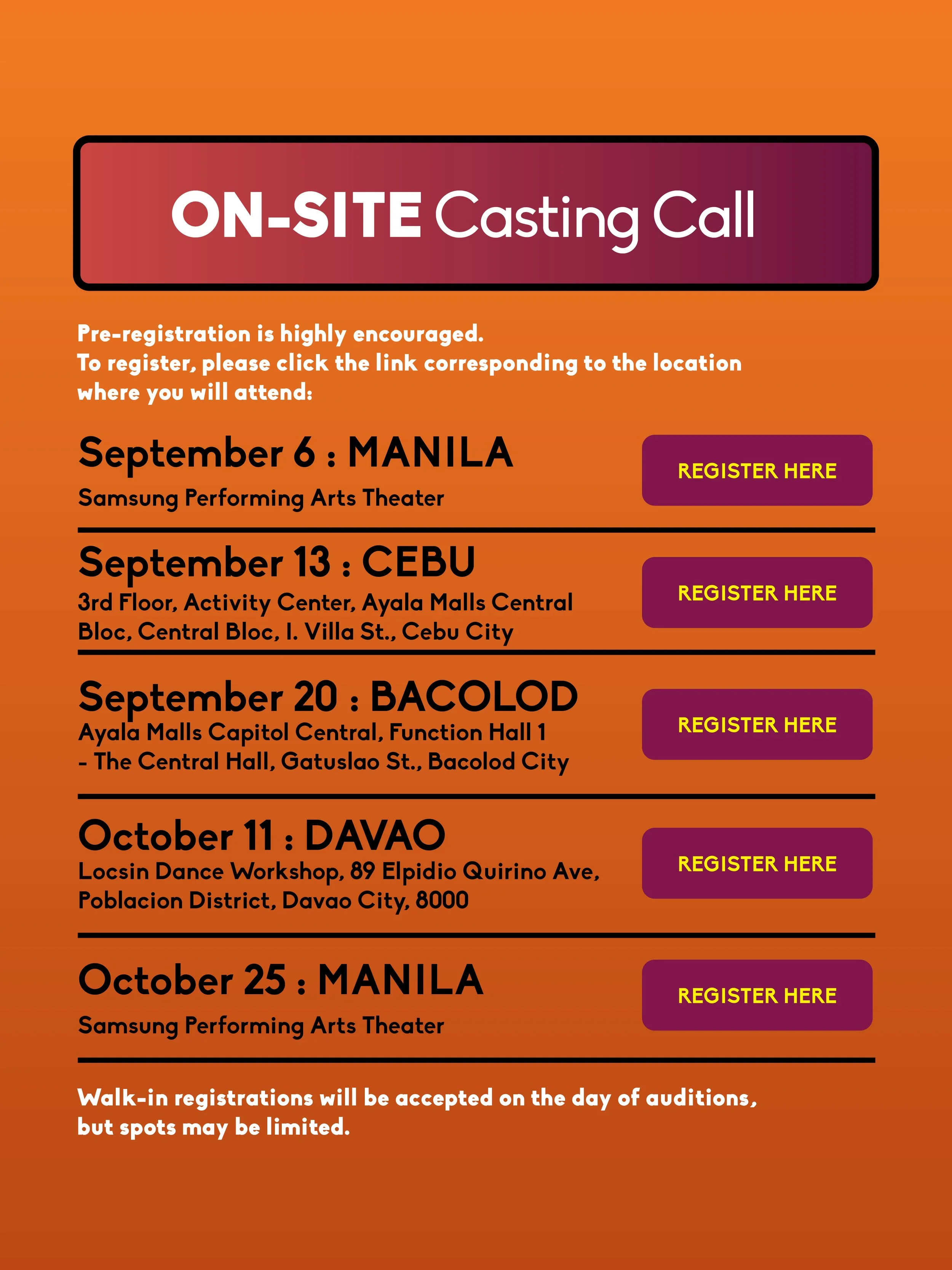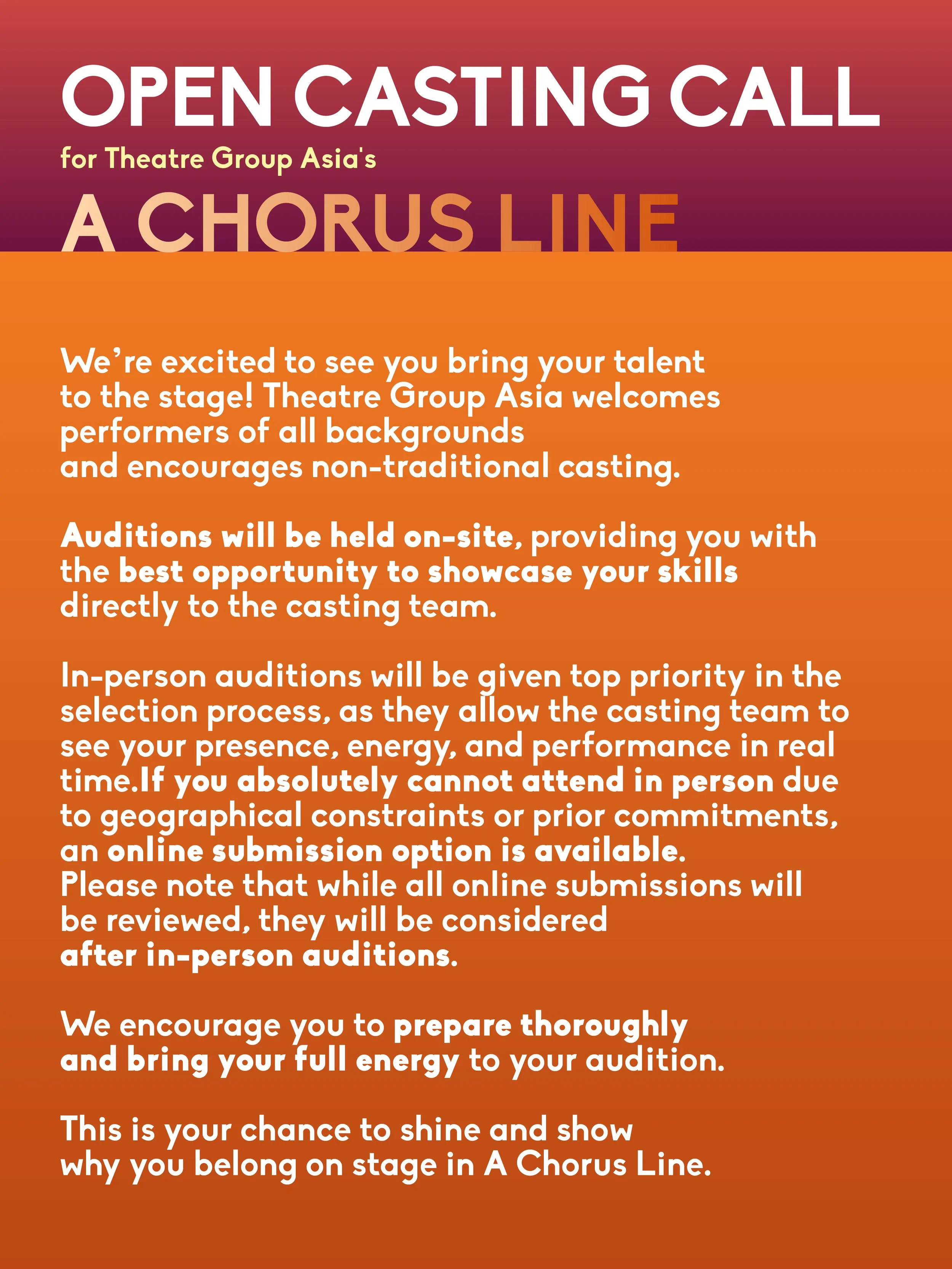 Theatre Group Asia in partnership with Ayala Land, Ayala Malls, and Seda presents the Worldwide Casting Call for “A Chorus Line”